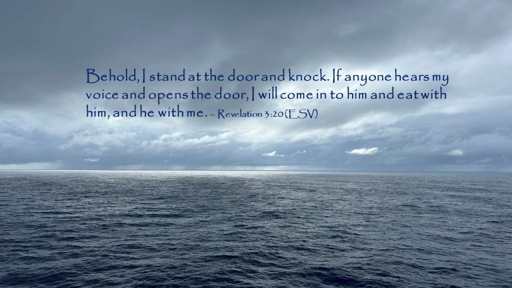 Behold, I stand at the door and knock. If anyone hears my voice and opens the door, I will come in to him and eat with him, and he with me.